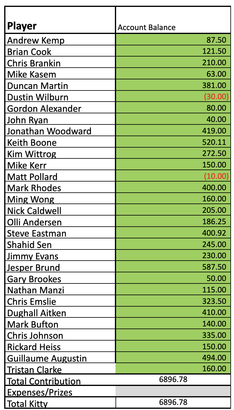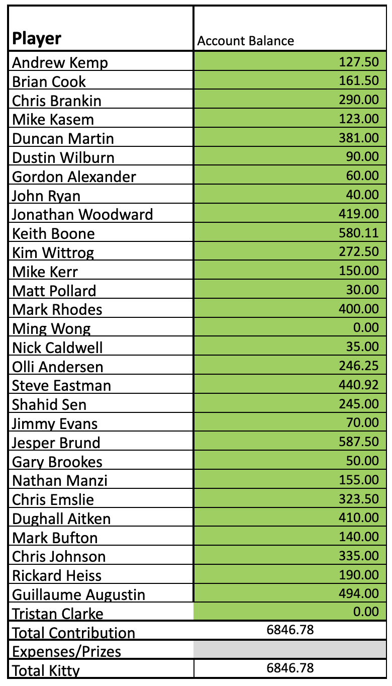 Subs are to be paid to Chris Emslie before your account balance gets to zero.